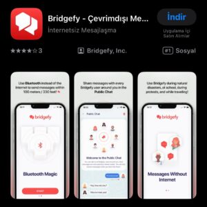 Bluetooth bağlantısı ile çalışan “Bridgefy” adlı mobil uygulama ile olası bir afet veya acil durum anında iletişim kurabilirsiniz. İnternet ile SMS hakkına gerek olmayan uygulamada, konum servislerinizi açarak 100 metreye kadar çevrimdışı mesajlar gönderebilirsiniz.