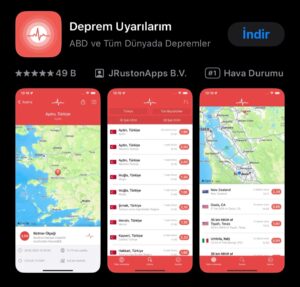Deprem olasılığını birkaç dakika önceden uyardığını iddia eden, acil durumlarda yakınlarınıza kısa mesaj göndererek durumunuzu ve konumunuzu bildiren birçok ücretli/ücretsiz mobil uygulama mevcut. Acil durumlar için telefonunuzda bulunması önerilen, benzer işlevli 10 uygulama;