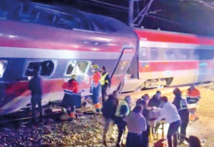 Raydan Çıkma: Malaga’dan Madrid’e giden yüksek hızlı trenin üç vagonu bilinmeyen bir nedenle raydan çıktı.