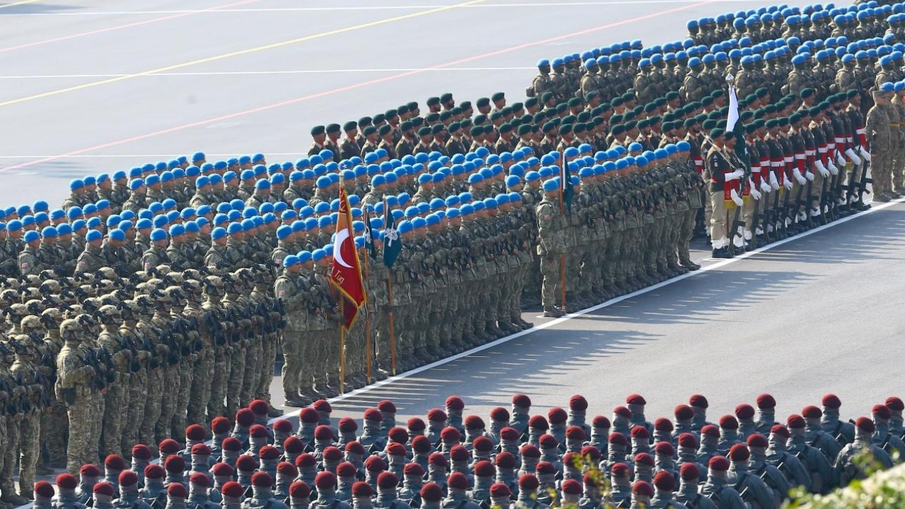 Pakistan Silahlı Kuvvetleri’ne bağlı birliklerin de katıldığı törende, Azerbaycan ordusunun modern tankları, zırhlı araçları, uzun menzilli füze sistemleri ve topçu unsurları sergilendi. Savaşın seyrini değiştiren Bayraktar TB2 ve Akıncı SİHA’lar da tören geçişinde yer aldı.