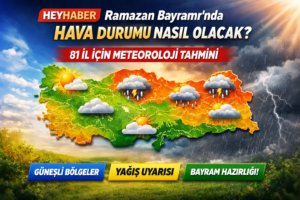 Ramazan Bayramı yaklaşırken milyonlarca vatandaş bayramda hava nasıl olacak sorusunun yanıtını merak ediyor. Meteoroloji Genel Müdürlüğü’nün son tahminlerine göre bayram günlerinde Türkiye genelinde hava sıcaklıklarının mevsim normallerinde seyretmesi bekleniyor. İşte 81 il için bayram hava durumu tahminleri…